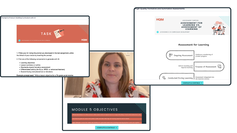 AI is becoming a consistent part of curriculum development, and understanding how to use it effectively and responsibly is increasingly important for curriculum developers and and leaders. Leveraging AI in Curriculum Development provides practical guidance on integrating AI tools into existing curriculum writing and development workflows. The course emphasizes the role of human expertise—subject matter knowledge, pedagogical understanding, and classroom experience—while showing how AI can support tasks like ensuring standards alignment, maintaining rigor, and improving efficiency. Participants will learn how to use AI to streamline repetitive tasks, while still making space for the professional judgment and nuance that support high-quality, student-centered instructional materials.